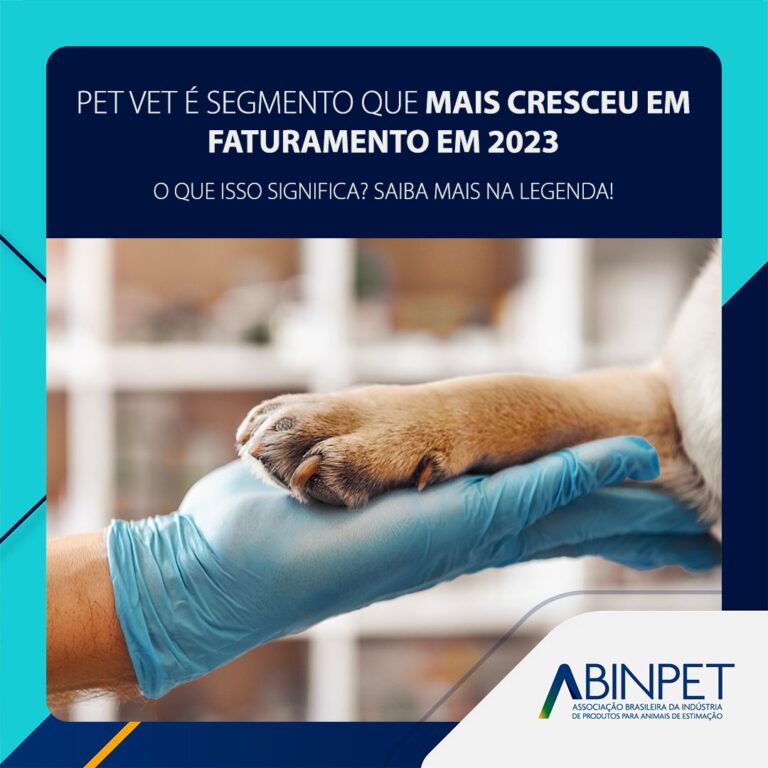 De acordo com os dados compilados pela Abinpet, o segmento pet vet (produtos veterinários) cresceu 16% em faturamento ao longo de 2023, seguido por pet care (15%), e pet food (10,6%). As projeções foram feitas com base em números até o 3º trimestre de 2023.
