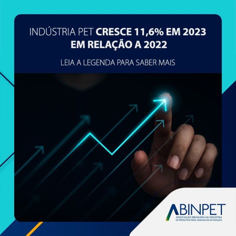 De acordo com projeção da Abinpet, a indústria brasileira de produtos para animais de estimação registrou um faturamento 11,65% maior em 2023 em relação ao ano anterior. A projeção atual tem como base o 3º trimestre de 2023.